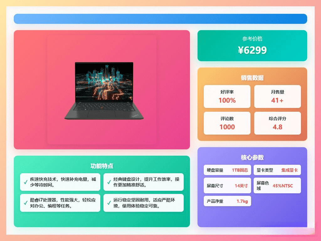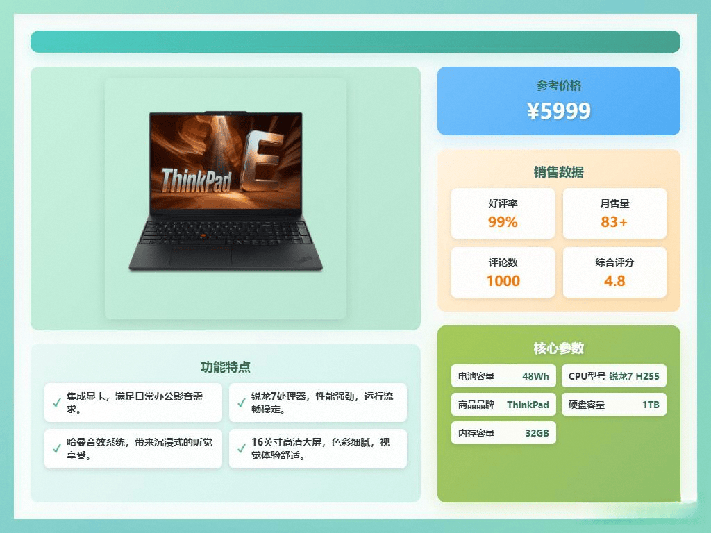 ThinkPad一直以来以其稳定可靠的性能著称,尤其在商务领域,口碑极佳。它的笔记本用料扎实,做工精细,抗造耐用,是许多职场人士的得力助手!