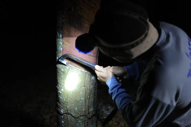 乳胶树经过一晚上的休息和储蓄,树体内水分饱满,也会有更充分的乳胶液进行采集。