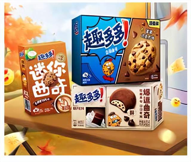 为匹配这一场景,趣多多开发了迷你装和独立小袋装产品,回应下午茶的即时、轻量化需求,缓解打工人的身材焦虑。同时,趣多多还推出了办公室分享大礼包,礼盒内赠送“珍惜时间,努力搞钱”主题的办公桌垫,以及使用饼干形象设计的职场表情包贴纸。