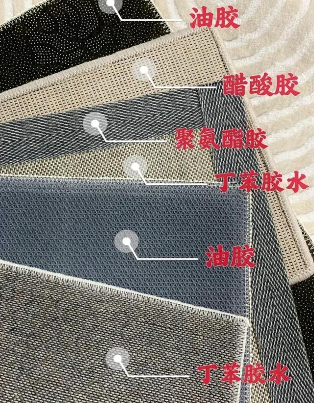 特别是在北方有暖气或地暖的家庭中,廉价地毯背面的胶层,遇热后更会加速甲醛释放。而且这类地毯一般多是采用工业废料制成纤维,再配合劣质背胶降低成本。其中的背胶多是溶剂型胶粘剂,就含有甲醛和苯等有害的挥发性有机物。
