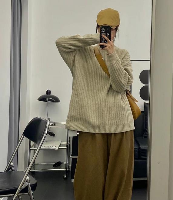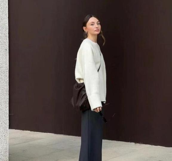 最后一个就是所选择的毛衣与阔腿裤宽度要尽量保持一致,如果你穿的阔腿裤较宽,那么毛衣的版型宽度也不能超出裤腿的一倍。