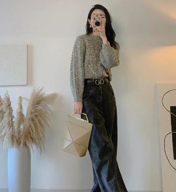 毛衣+阔腿裤要怎么穿才时髦好看呢?选择同色系的搭配吧,真的非常时髦显高级,麻花材质面料,质感超好的,穿起来也很保暖。